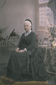 Marie (1818-1907) Koloriertes Foto der Königin Marie von Hannover, (geb. Prinzessin von Sachsen - Altenburg) um 1870. Schloss Marienburg trägt den Namen der Königin Marie von Hannover. Der König schenkte das noch zu erbauende Schloss der Königin zum Geburtstag. Obwohl das Schloss im Jahr 1866 schon fast fertig gestellt wurde, besuchte Königin Marie nach ihrer Abreise 1867 ins österreichische Exil das Schloss Marienburg nicht wieder. Das ehemalige Königreich Hannover wurde im Herbst 1866 offiziell von Preußen annektiert. Die Königin verstarb 1907 im Exil in Gmunden / Oberösterreich. Das Schloss verblieb bis heute im Familienbesitz der Welfen. |