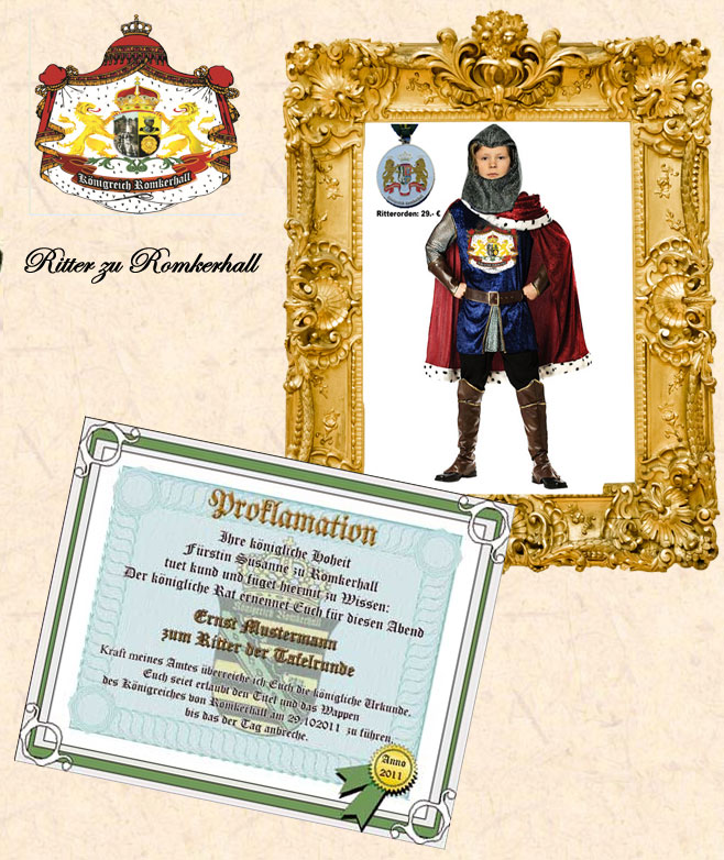 Neben der Proklamationsurkunde erhält jeder Ritter ein edles Ritterkostüm mit dem Wappen des Königreichs.