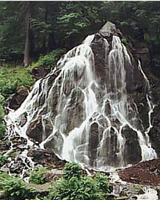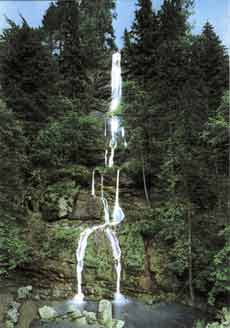 welche hier eine senkrechte Strecke von etwa 50 Meter überwinden können. Gegenüber des Wasserfalls